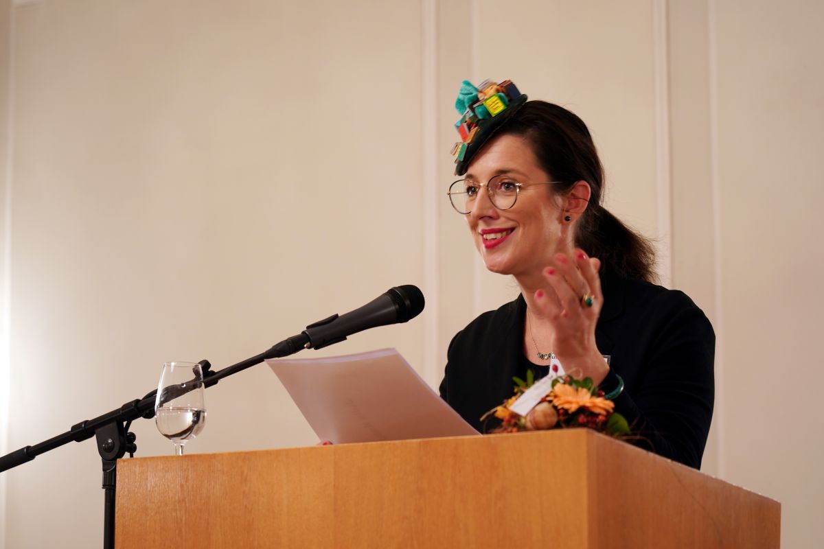 Julia hat unsere Buchvernissage und Preisverleihung am 23.05.2025 moderiert. Mit ihrer guten Laune, ihrem Humor und ihrer engagierten Art hat sie eine dynamische Veranstaltung in einer freundlichen, offenen Atmosphäre geschaffen. Mit hoher Kompetenz und viel Feingefühl hat Julia zu jedem Text unserer 25 Autor:innen ein paar sorgfältig gewählte Worte gefunden und den jeweiligen Autor:innen gezielte Fragen gestellt, die es ermöglicht haben, die talentierten jungen Schreibenden ins Zentrum zu rücken. Wir haben uns sehr über die Zusammenarbeit gefreut - und hoffen sehr, dass sie auch im nächsten Jahr wieder mit dabei ist.